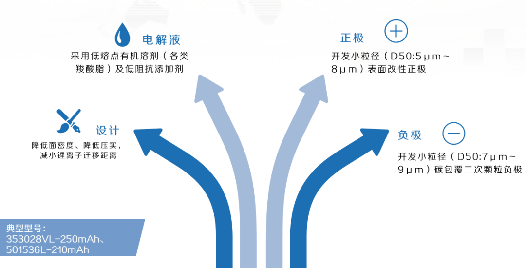 眾旺德采用低溫材料體系開發(fā)的低溫型號(hào)電池,可以實(shí)現(xiàn)負(fù)40至60度的放電溫度、充電溫度可以達(dá)到負(fù)20度至45度的充電,電池壽命可以達(dá)到500周。