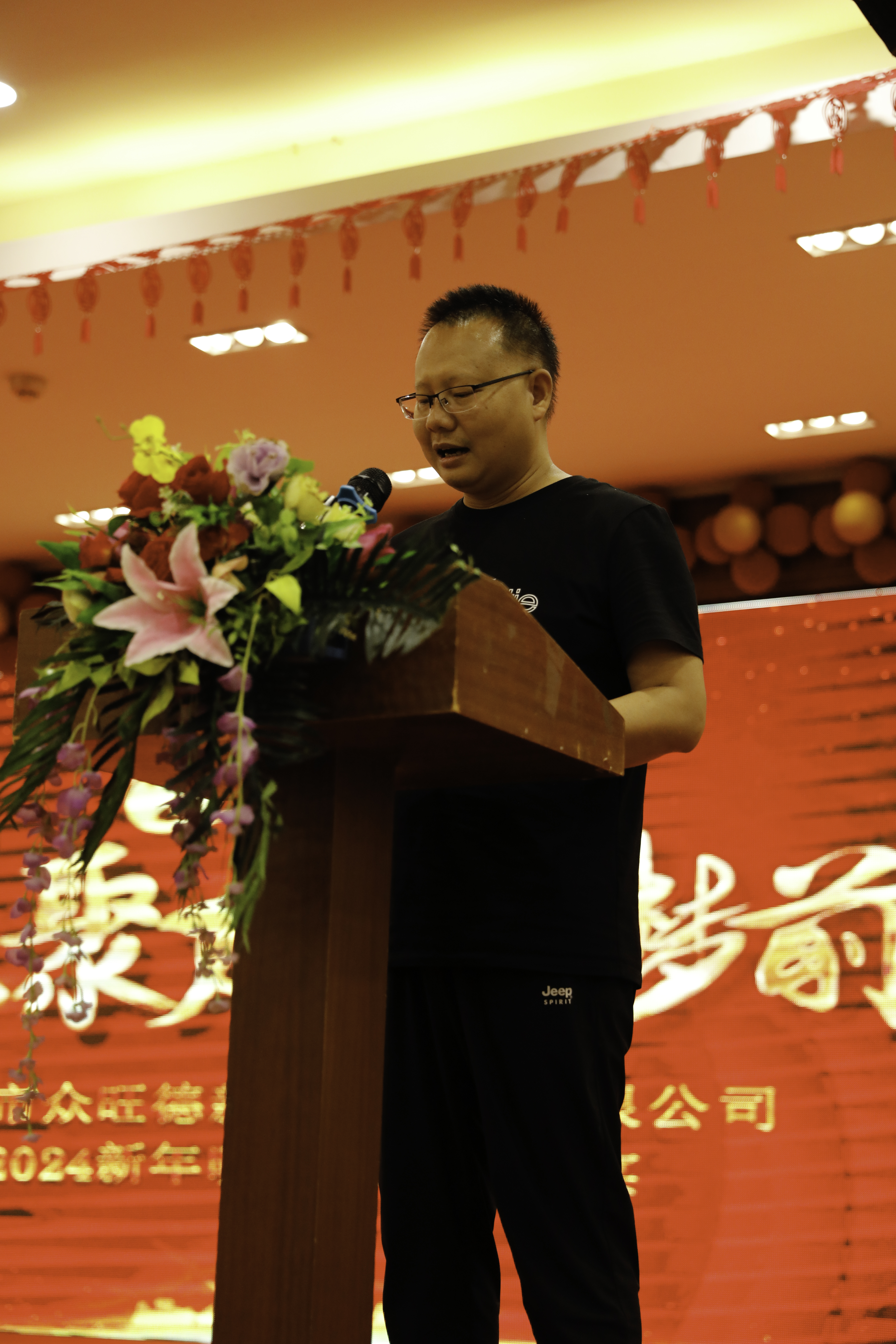 董事長兼總經(jīng)理彭總在年會上發(fā)表致詞為我們盛大的年會活動拉開序幕。在公司總經(jīng)辦的正確領(lǐng)導(dǎo)下,全體眾旺德人上下一心,取得了2023年的豐收碩果。2024年我們將繼續(xù)努力,發(fā)揚敢闖敢拼的開拓精神 ,努力奔跑、勇敢追夢,創(chuàng)造新的輝煌。